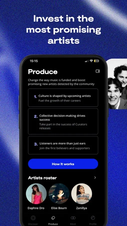 - Take part of artists journey by investing in their next release in return of royalties