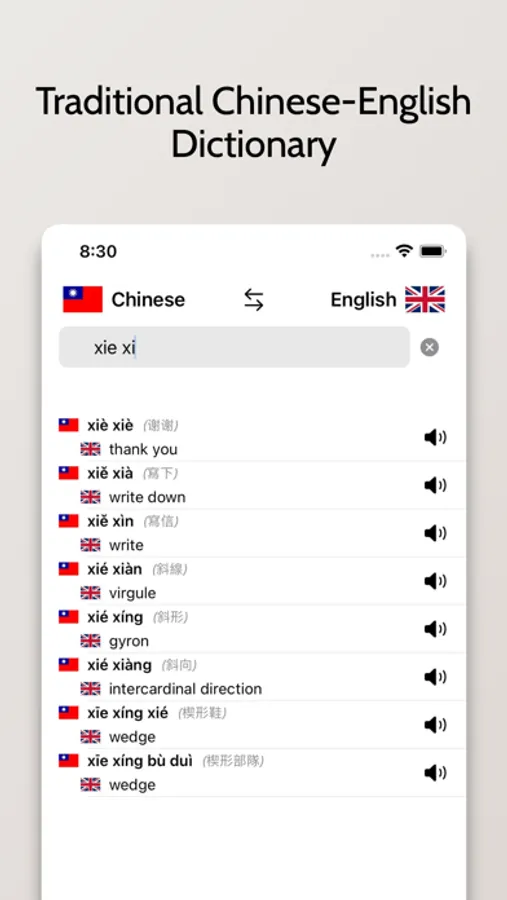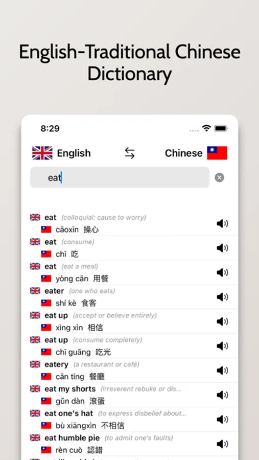 Audio Pronunciation: Not sure how to pronounce that word? No worries! Our app provides audio pronunciation in both Traditional Chinese and English, helping you sound like a native.