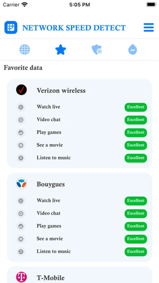 This function can help you choose the most suitable network operator, and the network speed data comes from network collection.