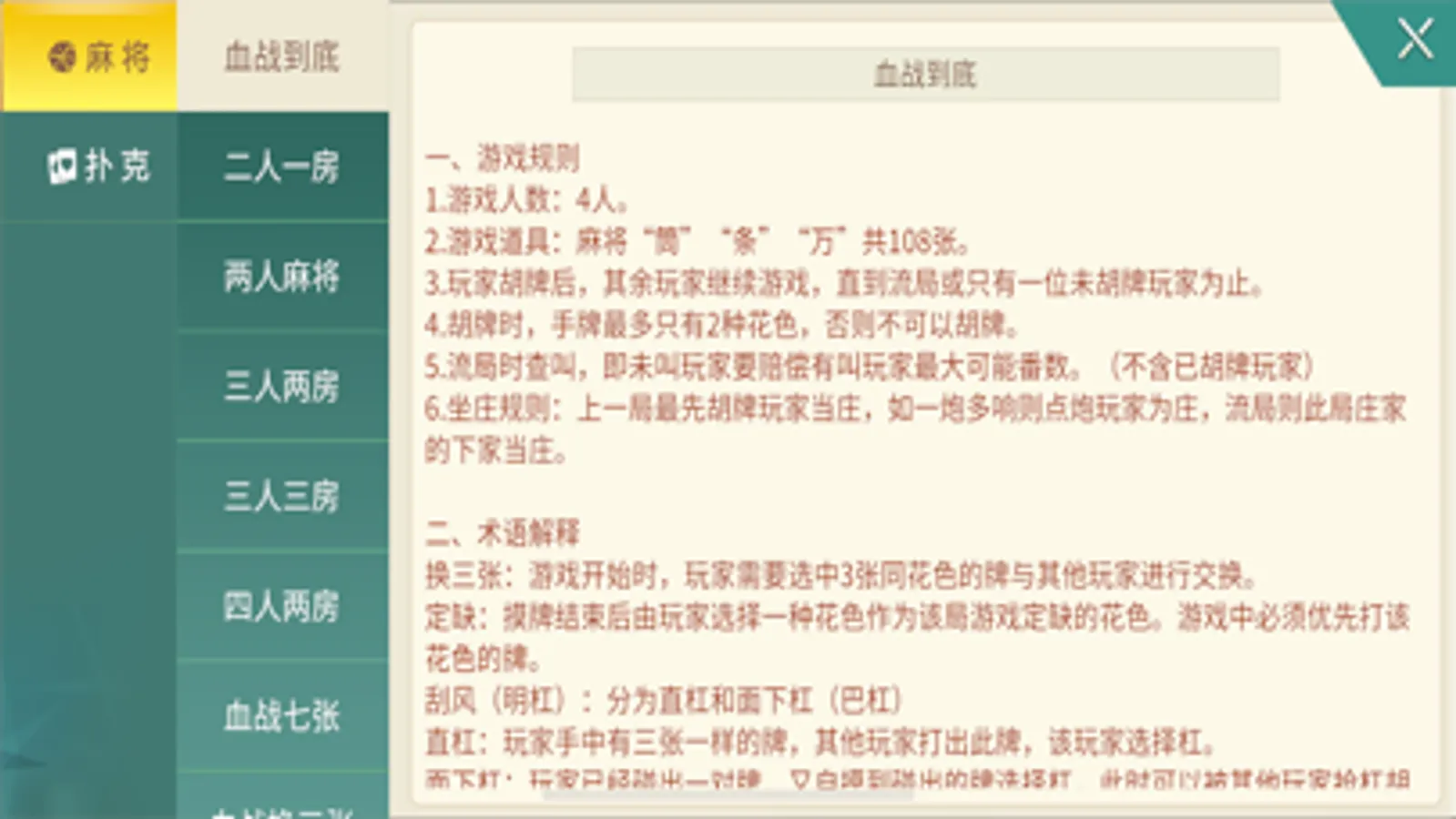 天府麻舍是四川地道的四川麻将玩法,可碰、可杠,不能吃,刮风、下雨、血战到底。直接手机打麻将,快乐生活每一天。