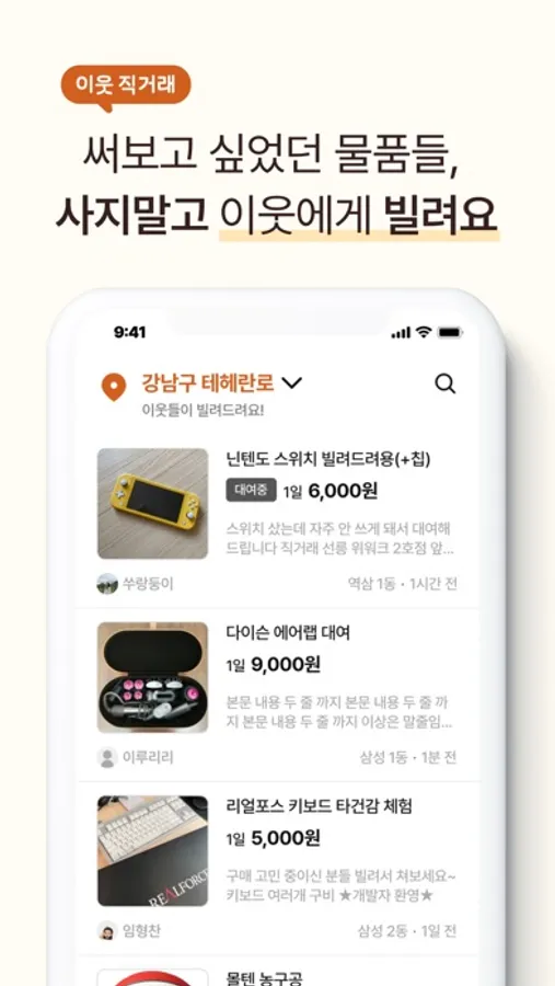 ■ 동네 이웃들과 함께 소소하게 빌려써요