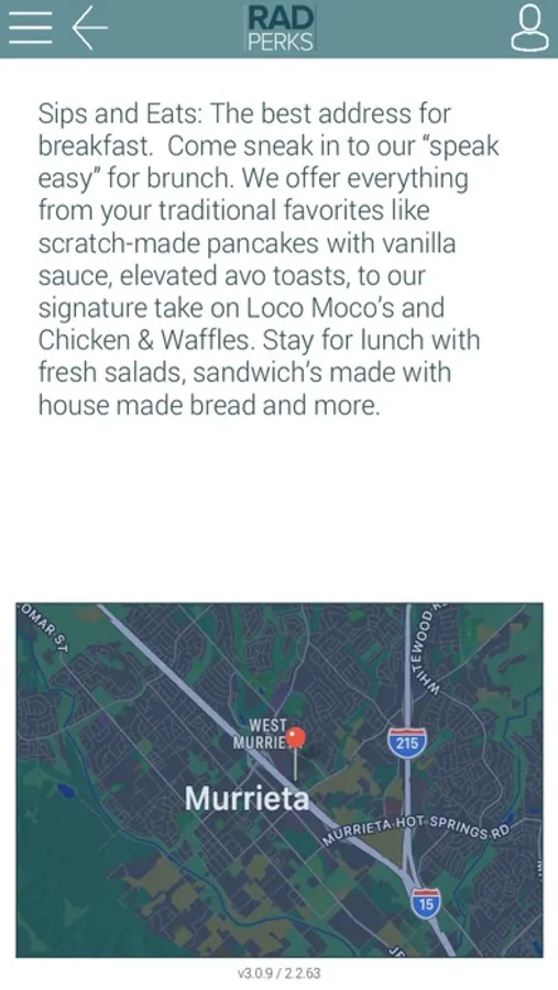 Welcome to the RAD Perks app where you can join the inner circle at Rival Coffee and Sips & Eats. Unlock a world of discounts, promotions, and special offers available only to RAD Perks users. From happy hour discounts to loyalty rewards and early bird invite to private chef dinners, save money while indulging in your favorite locally owned coffee shop and restaurant in Murrieta, CA.