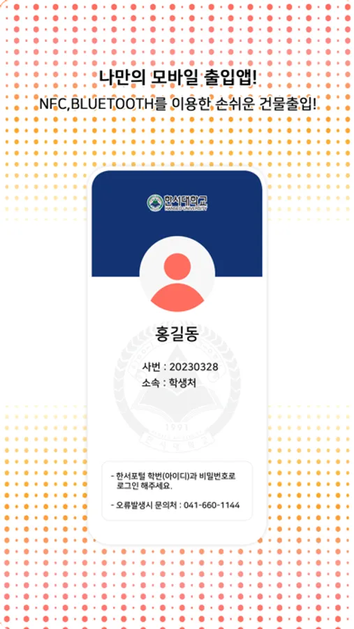 본 앱은 한서대학교 학생 및 직원들의 교내 건물출입을 위한 앱입니다.