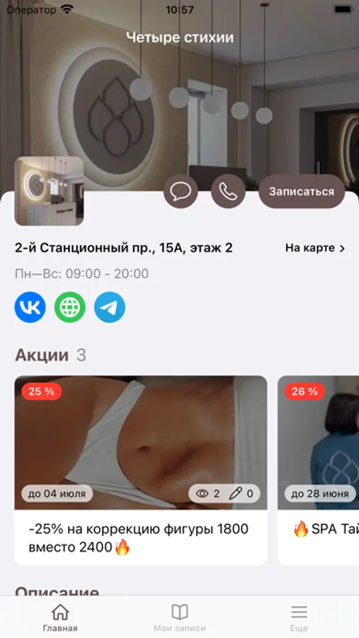 Приветствуем Вас в мобильном приложении салона красоты «Четыре стихии».