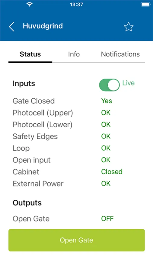 - Se live status på grinden