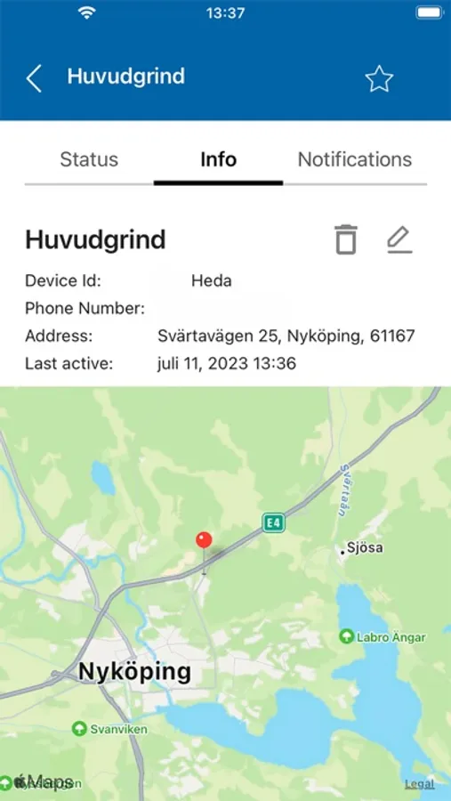- Få push notis i appen vid fel på anläggningen