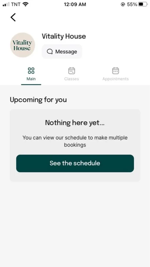 The Vitality House app makes it very easy for you to manage your Vitality House account, book into our classes and events, watch our on-demand content, and keep in touch with us. You can easily message us if you have a question or want to share something with them. You can also follow our public feed to see any announcements we make, promos we run, or content we share.