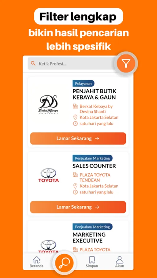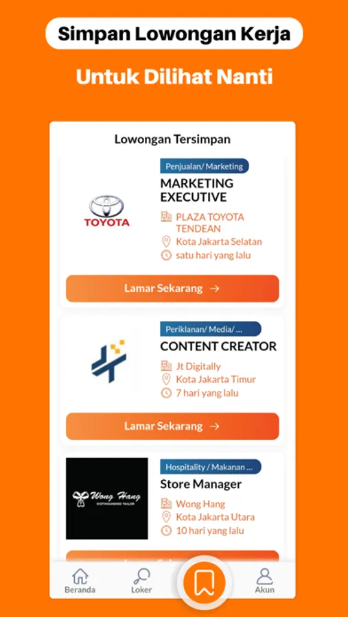 Tandai lowongan kerja favorit kamu dan simpan mereka ke dalam daftar "Simpan" untuk referensi di masa yang akan datang.