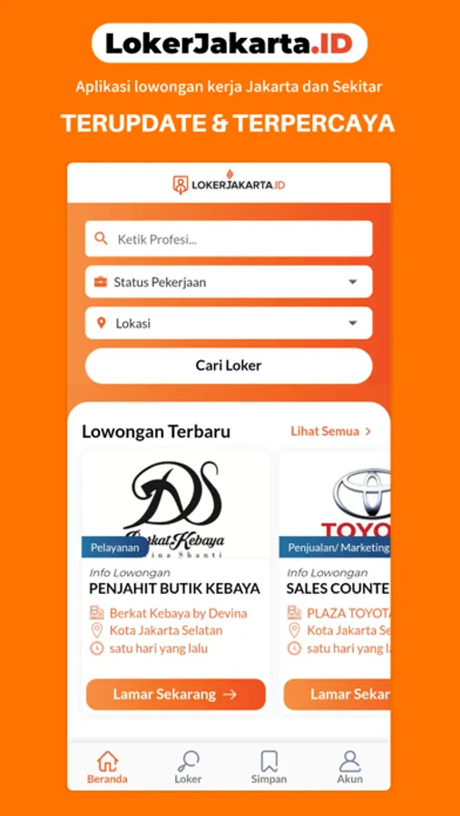 LokerJakarta.id adalah aplikasi pencarian lowongan kerja di Jakarta dan Area Sekitarnya paling up-to-date dan terpercaya yang didedikasikan untuk membantu kamu menemukan peluang karir sesuai minat dan keahlian.