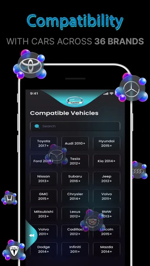 Our app is compatible with over 35 of the most popular car brands, including Acura, Audi, BMW, Buick, Cadillac, Chevrolet, Chrysler, Dodge, Ford, GMC, Hyundai, Jaguar, Jeep, Land Rover, Lexus, Lincoln, Mercedes-Benz, MINI, Nissan, RAM, Rivian, Tesla, Toyota, Volkswagen, Volvo, and more.