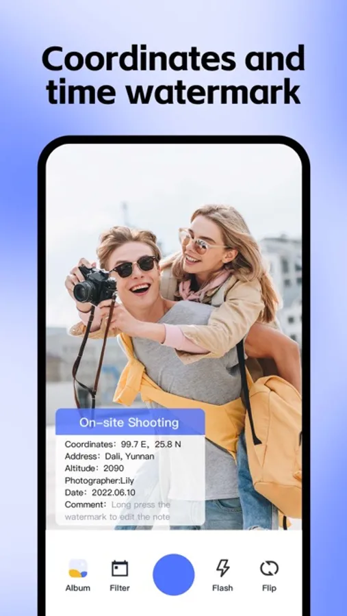 Its photos with watermark/stamp which indicates Longitude&latitude information, location, altitude, date & time taken.