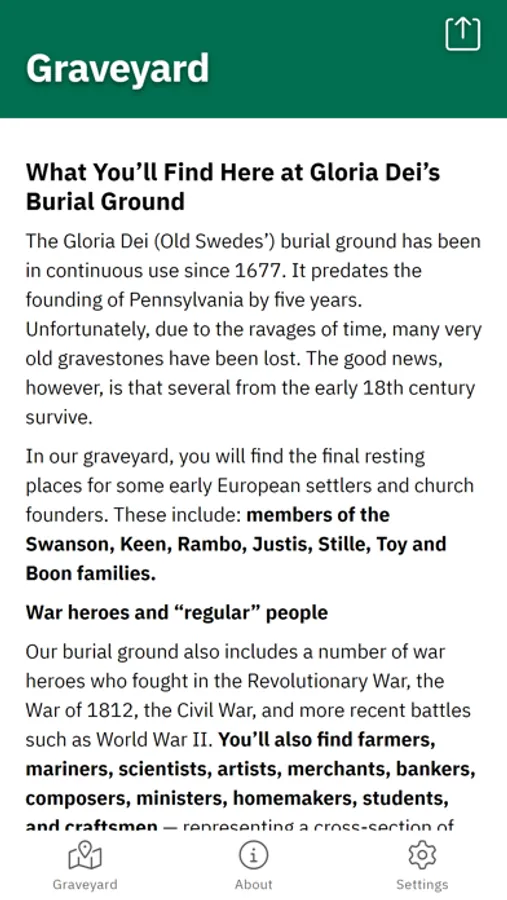 Explore Philadelphia's oldest graveyard and learn about the people who are buried here. You'll find some early European settlers, who were here before William Penn. Our burial ground also includes the final resting places of many war heroes who fought in the Revolutionary War, the War of 1812, the Civil War and more recent battles such as World War II. You’ll also find farmers, mariners, scientists, artists, merchants, bankers, composers, ministers, homemakers, students, and craftsmen — representing a cross-section of local Philadelphia history.