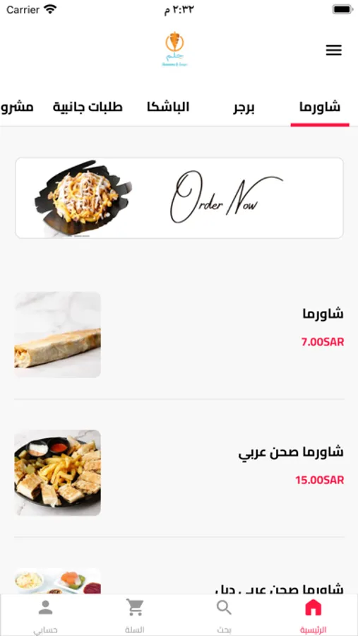 نقدم لكم أشهى المأكولات من شاورما، برغر، باشكا، طلبات جانبية ومشروبات