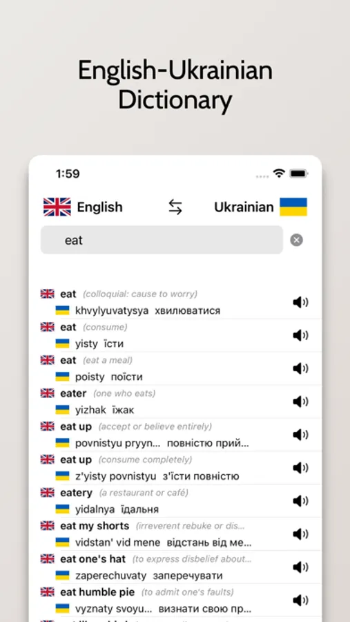 Audio Pronunciation: Not sure how to pronounce that word? No worries! Our app provides audio pronunciation in both Ukrainian and English, helping you sound like a native.