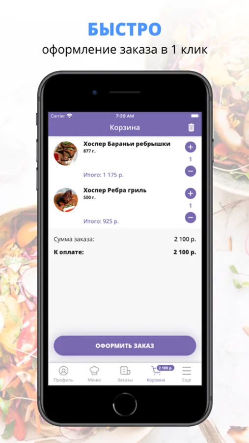 Скачивайте наше приложение, оформляйте заказ и наслаждайтесь любимой едой, где бы Вы ни были! Приятного аппетита!