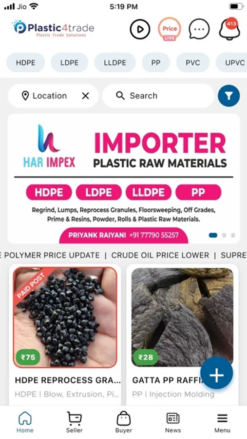 Plastic4trade is a leading Global plastic trade solution App that represents the plastic business trade solution, where you can buy and sale Polymer App of HDPE, LDPE, LLDPE, PP, PVC, UPVC, CPVC, PET, POLYESTER, PPCP, PC, PE, PS, ABS, ACRYLIC, EVA, NYLON, EVOH, HMW, UHMW, Rubber and Plastic Machinery.