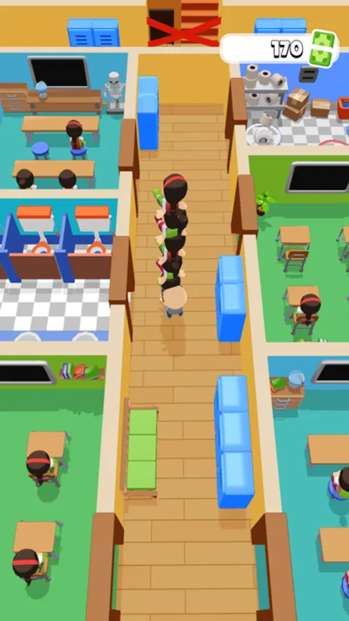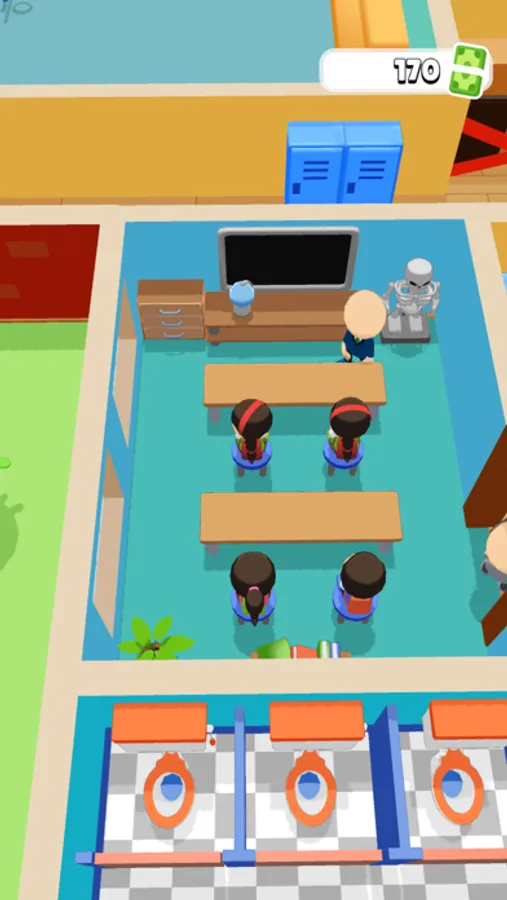Manage your school, take your kids to class, clean up after them, build the best school!