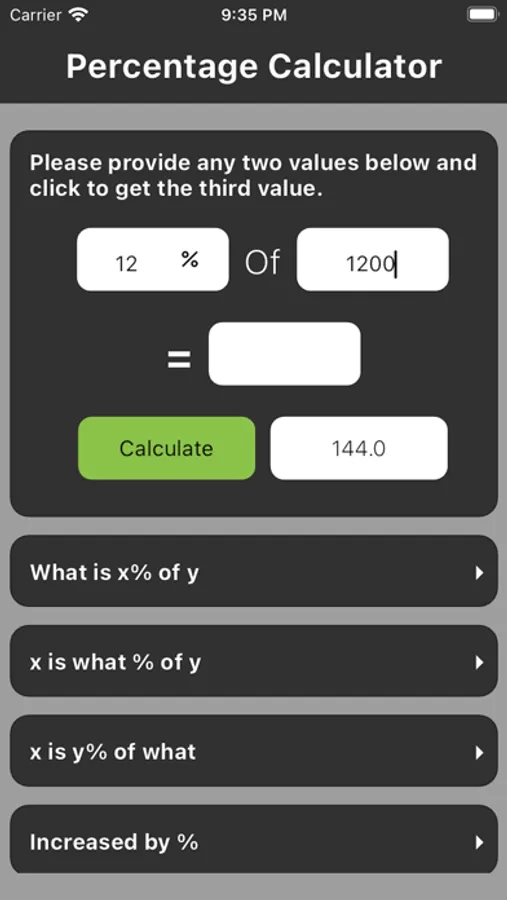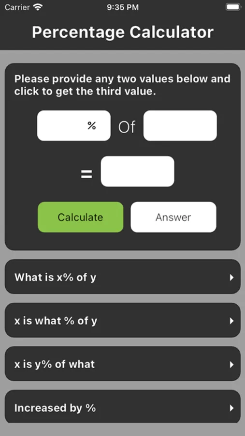 Soulve is one of the most reliable and fastest mechanisms to determine interests, tips, and discounts. -Imperatively visualize and lay calculations based on all types of percentages. -Input any value for the result of the calculation of the source. -Enter the input values and the calculator will determine and calculate the abiding ones.