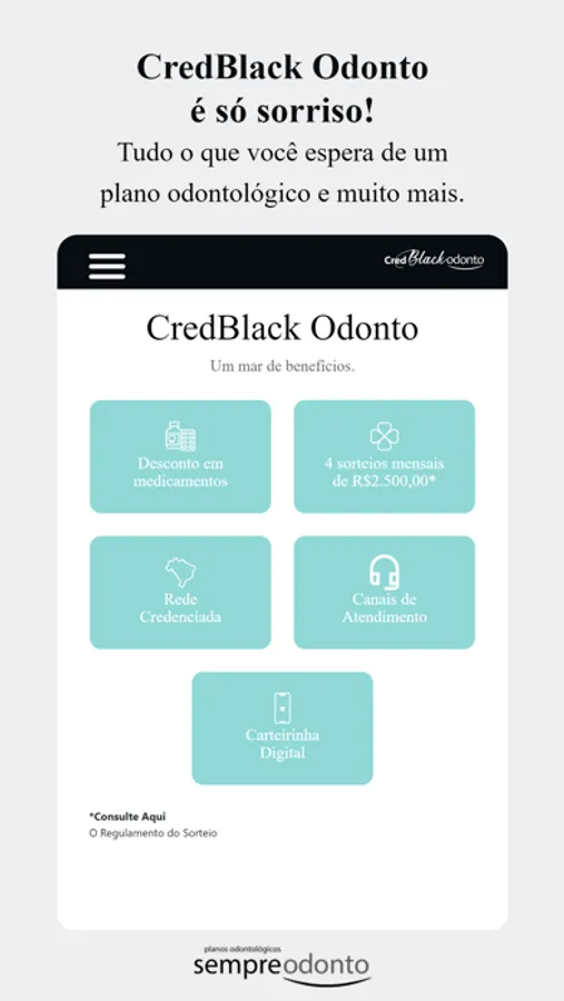 A Sempre Odonto Planos Odontológicos disponibiliza um aplicativo exclusivo aos seus usuários do plano CredBlack Odonto