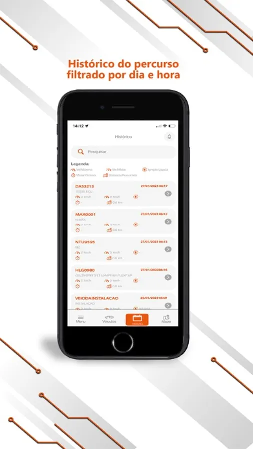 - Historico do percurso por onde passou filtrando por dia e hora