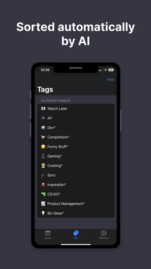 - Create your tags and let AI sort everything automatically