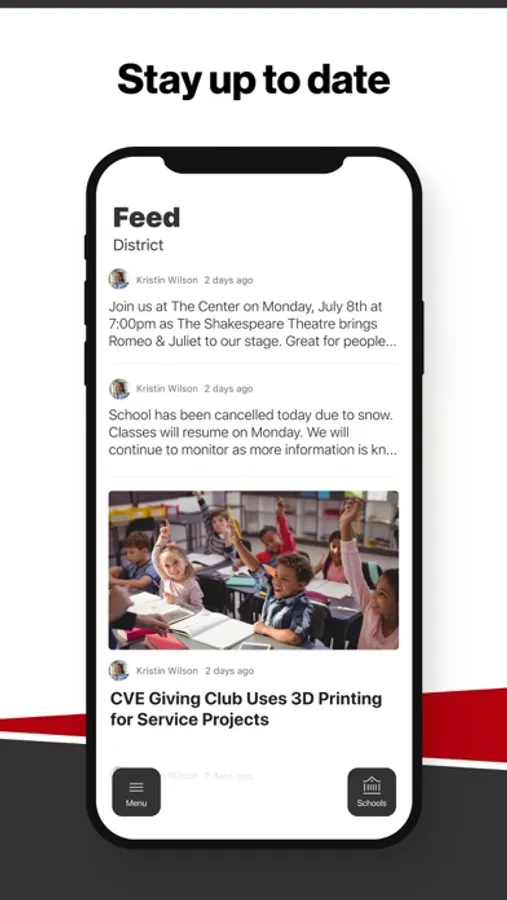 In the Live Feed is where you’ll find updates from the administration about what’s going on in the district right now. Whether that’s celebrating a student’s success, or reminding you about an upcoming deadline.