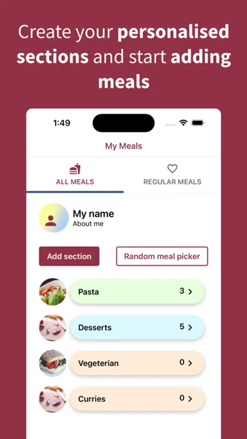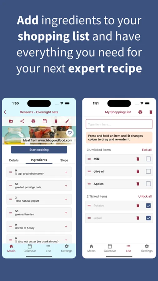 Add your favourite meals into the app manually or by using a link from supported websites.