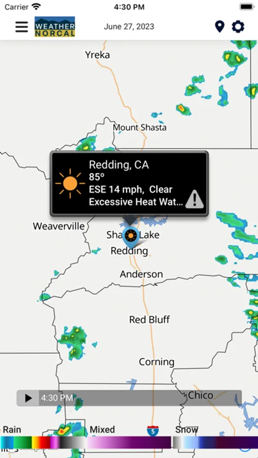 From a Meteorologist with close to 25 years of experience in Northern California, turn to the Weather NorCal Channel to keep you safe and informed. The all new Weather NorCal App is specifically designed for you! We have divided the region into 6 different "Neighborhoods" Trinity County, the North Coast (Del Norte and Humboldt County), Siskiyou County, Modoc County, the Eastern Mountains and the Valley. We are dedicated to providing you the very latest weather information all from the convenience of your smartphone or tablet. With direct access to the region’s first all local 24/7 weather channel and much more, we are here to serve you with the latest information to keep you safe and informed during all forms of weather in Northern California.