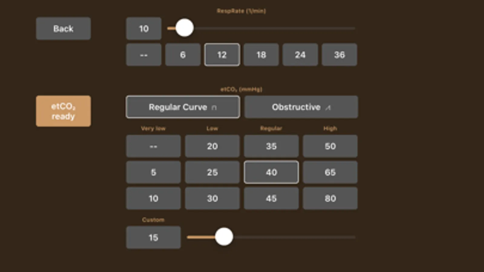 • etCO₂ waveform (regular/obstructive) & Respiratory Rate