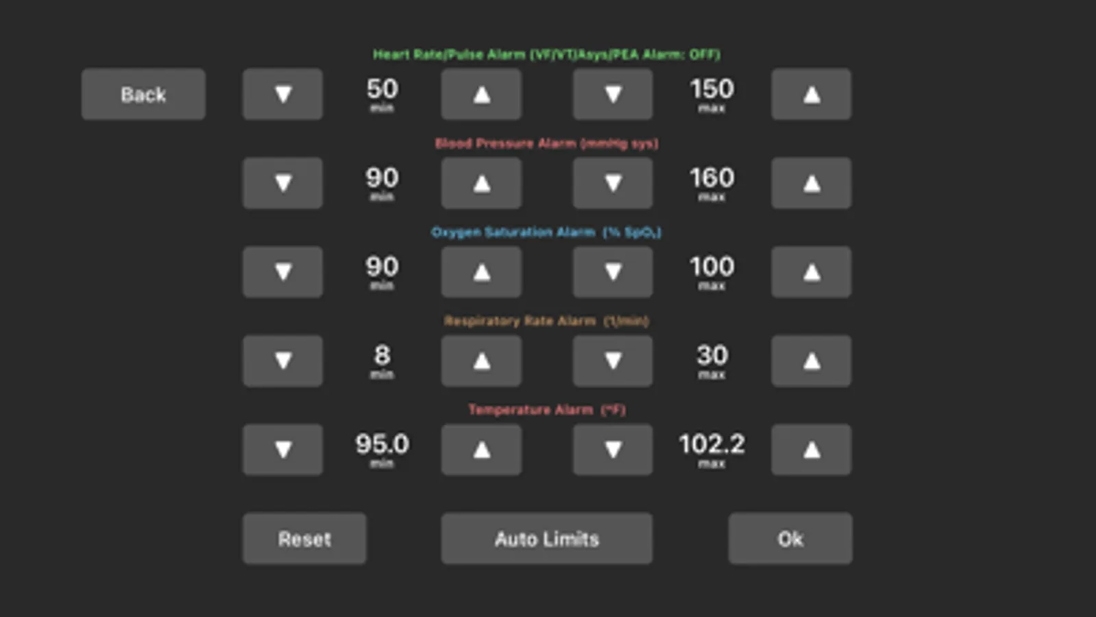 • Alarm Function with sound, variable & auto limits, VF/VT detection