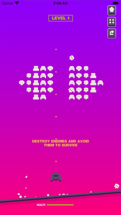 This is a game in which you need to control a spaceship and shoot down enemies and dodge them to survive, you will also meet three fights with your skills. Use a variety of weapons (Lasers, bombs, jumping platforms, etc.) to destroy everyone.