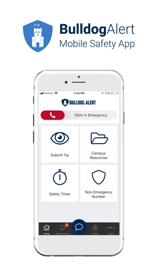 Use Bulldog Alert to add an additional layer of protection to your organization by utilizing tools such as: Panic Slider, Submit Tips and Safety Timer.