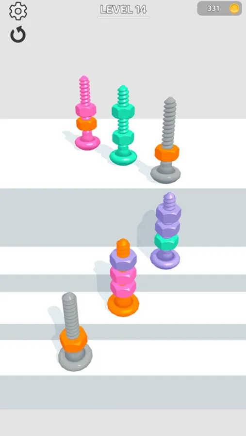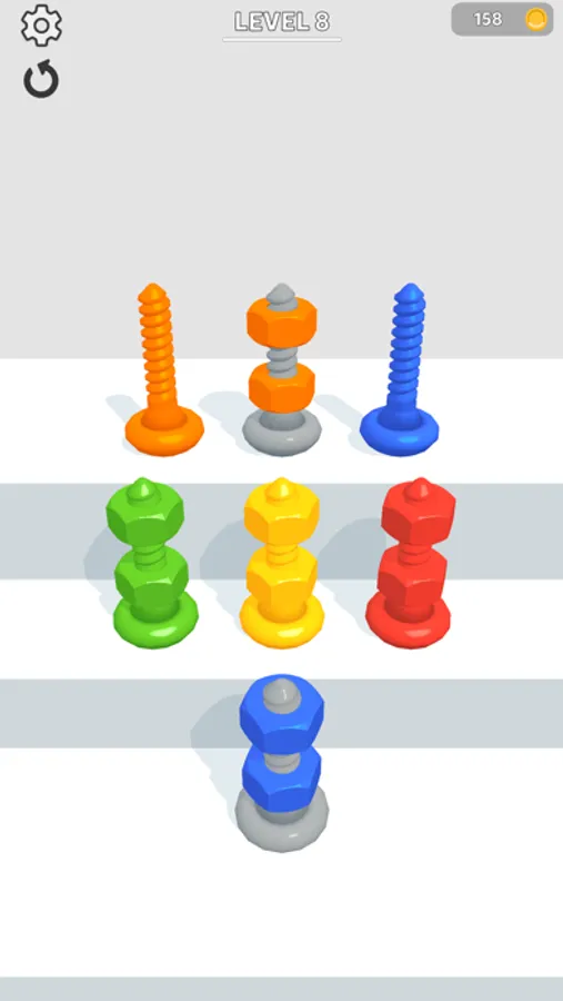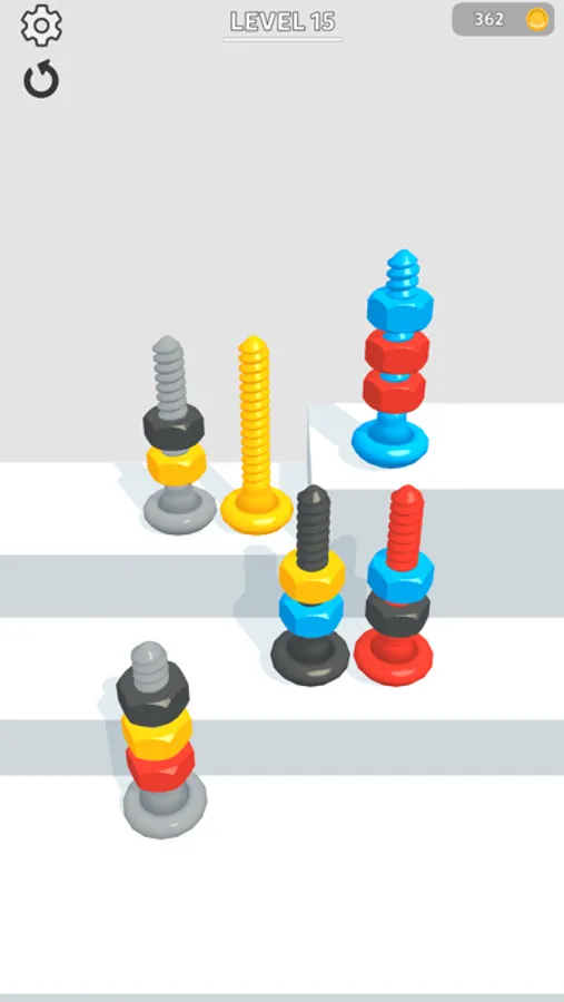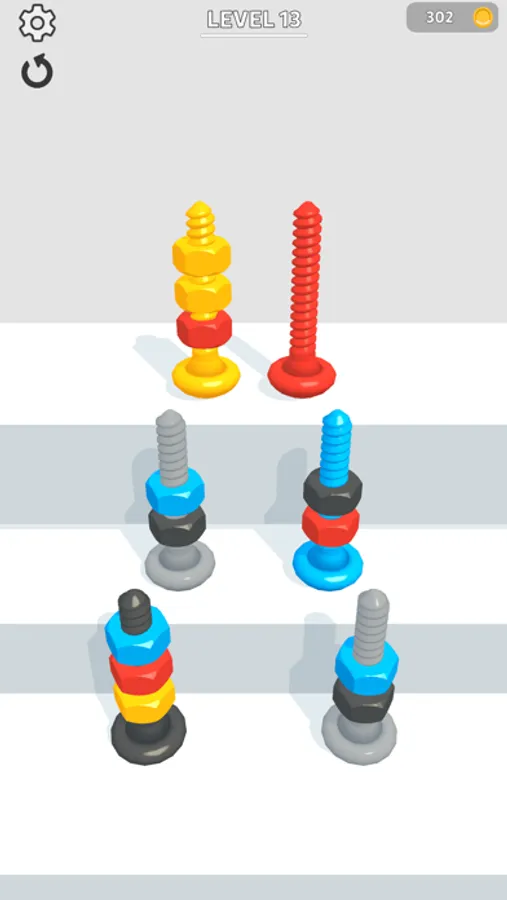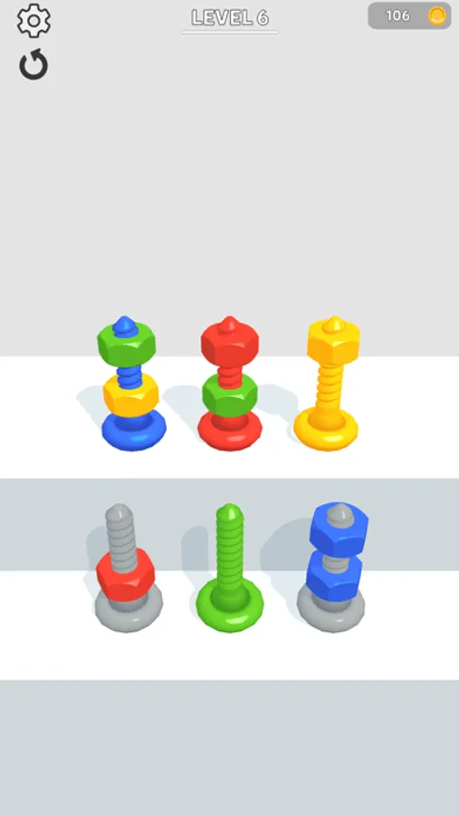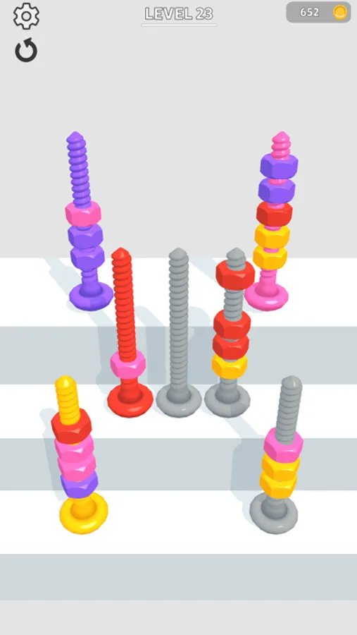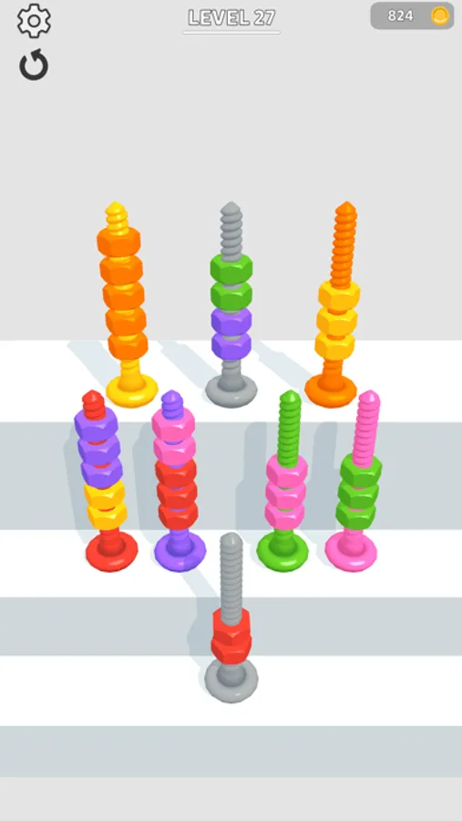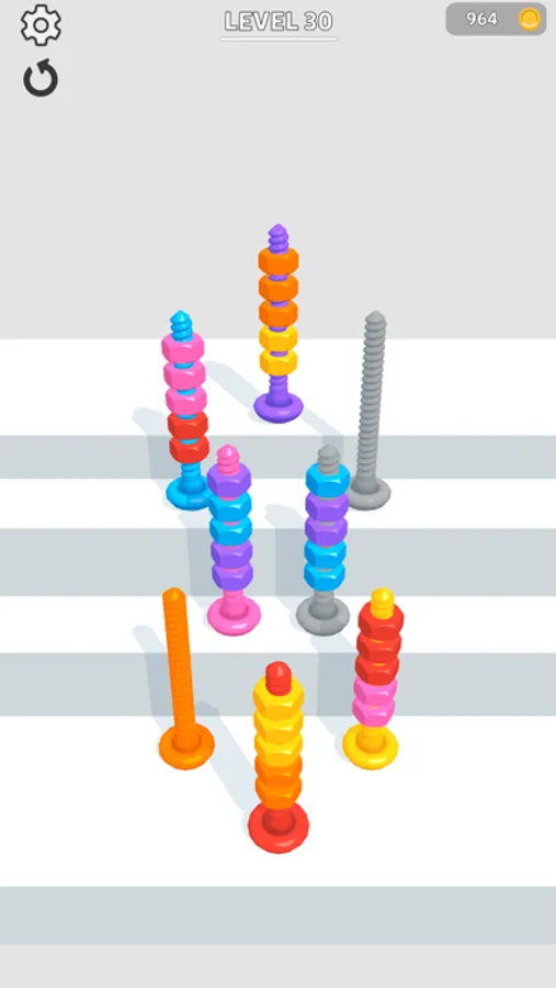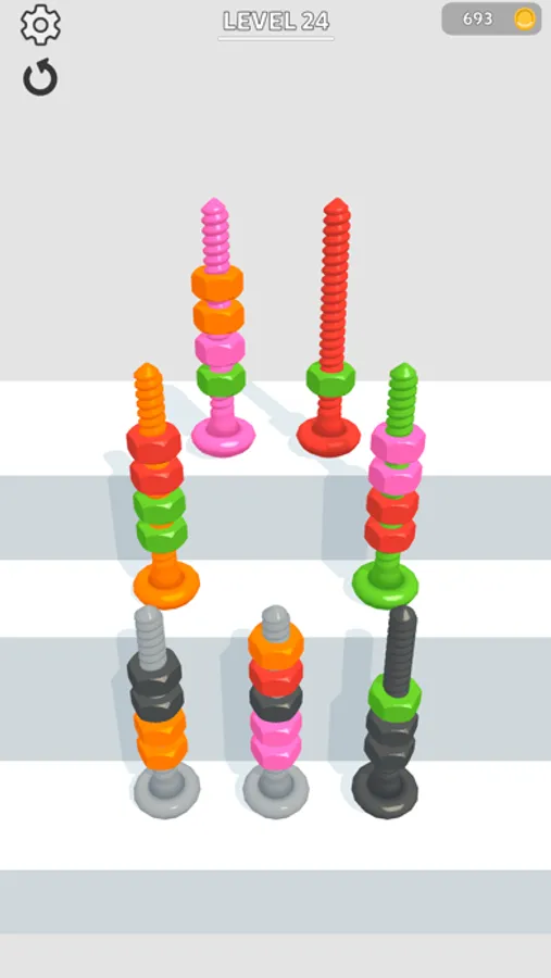 Sort bolts by color to pass levels!