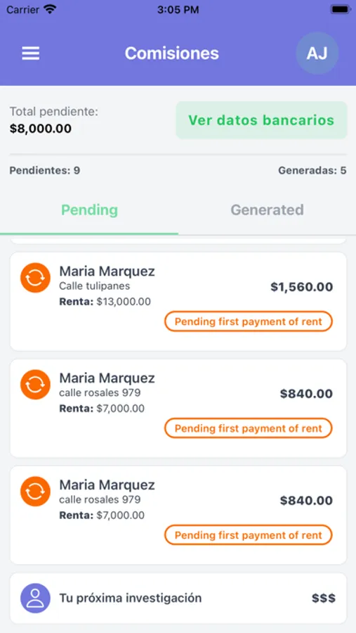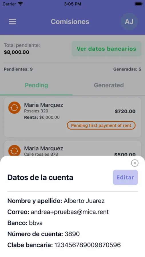 Nuestra aplicación ofrece una experiencia completa y segura para tus clientes. Permitimos a los inquilinos agregar sus datos bancarios de manera segura, lo que facilita el proceso de pago y asegura transacciones fluidas.