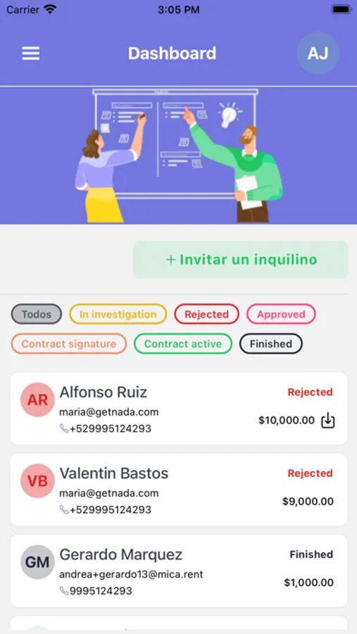 - Accede a reportes detallados de los inquilinos que aplican, incluyendo antecedentes crediticios y referencias.
