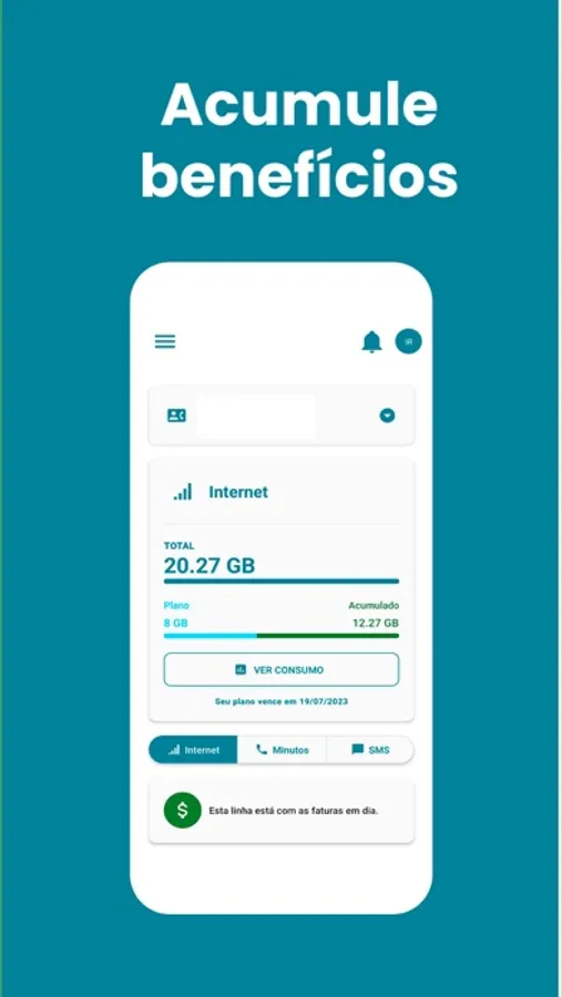 Se você estiver sempre com seu plano em dia, os Gigas que você não utiliza ACUMULARÃO para o próximo mês!