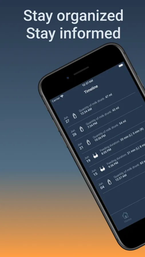 Recent Feedings Display: View the most recent feedings at a glance. Stay updated on your child's feeding schedule and track their milk consumption with ease.