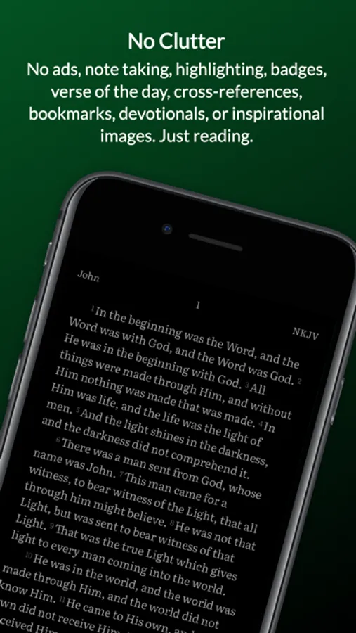 Bibliora prioritizes a pure reading experience and intentionally does not include features such as note taking, highlighting, badges, ads, verse of the day, cross-references, bookmarks, devotionals, memorization strategies, videos, or tracking reading activity. These features clutter the interface and distract readers from fully immersing themselves in the Bible.