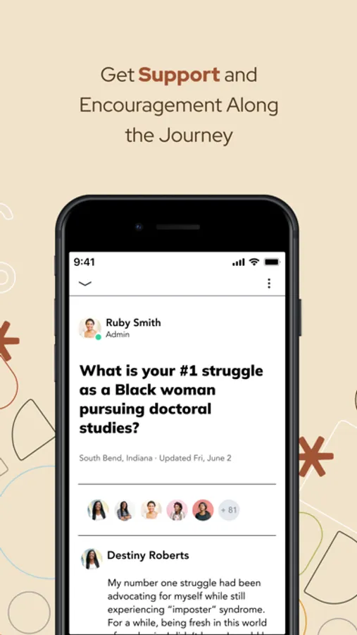 Join a community of brilliant Black women and non-binary individuals pursuing doctoral degrees with Cohort Sistas, the mobile app designed to uplift and empower you on your academic journey. We're here to provide the resources, mentorship, and unwavering support you need to thrive and excel in your doctoral journey and beyond.