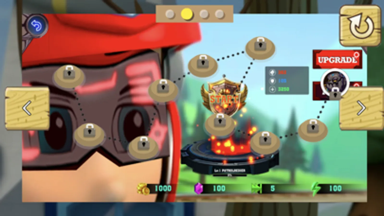 Collect coin and secret maps to upgrade your heroes power and become stronger.