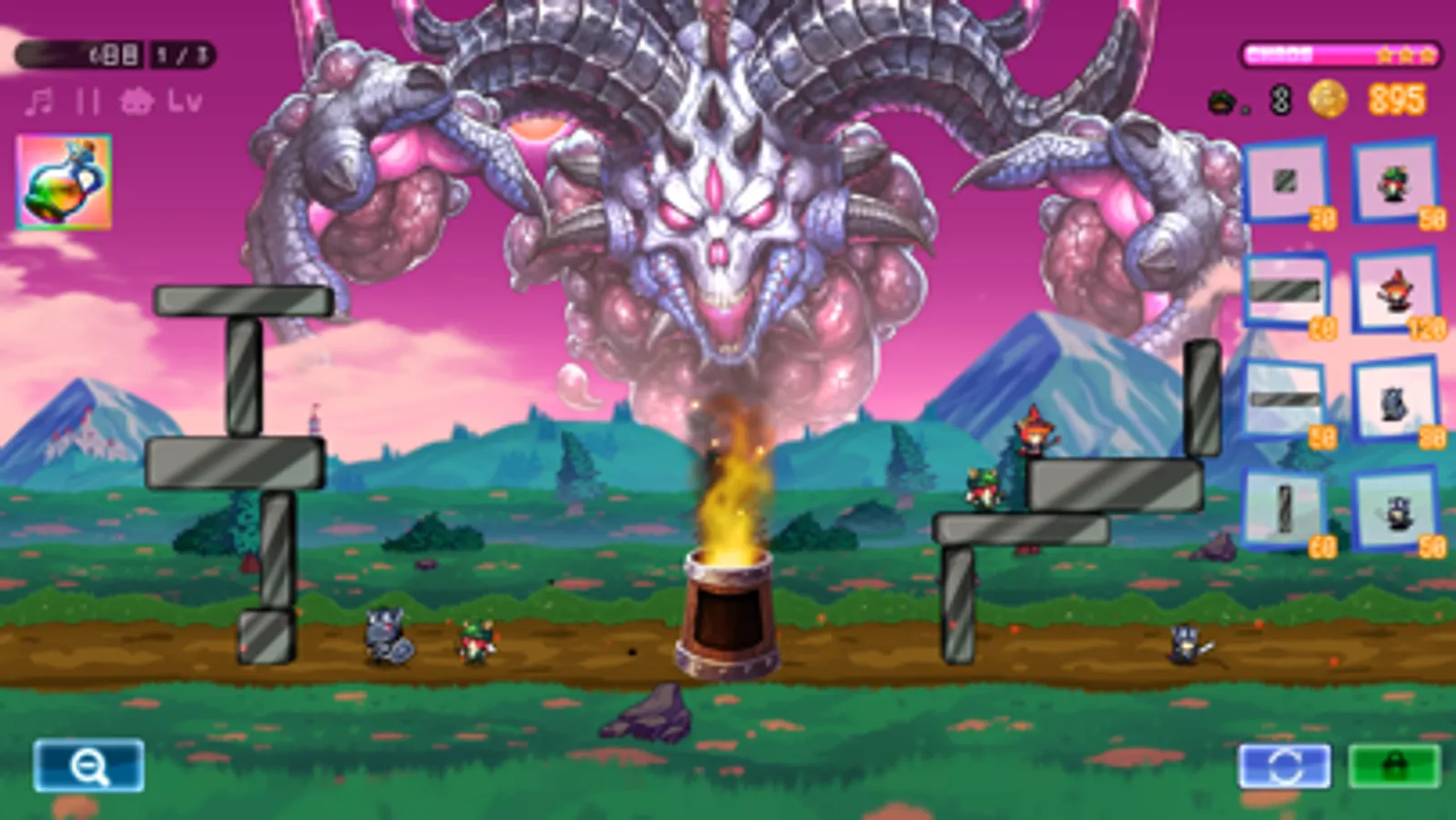 簡単操作と自由な想像で迫りくるモンスターから聖火を守ろう!