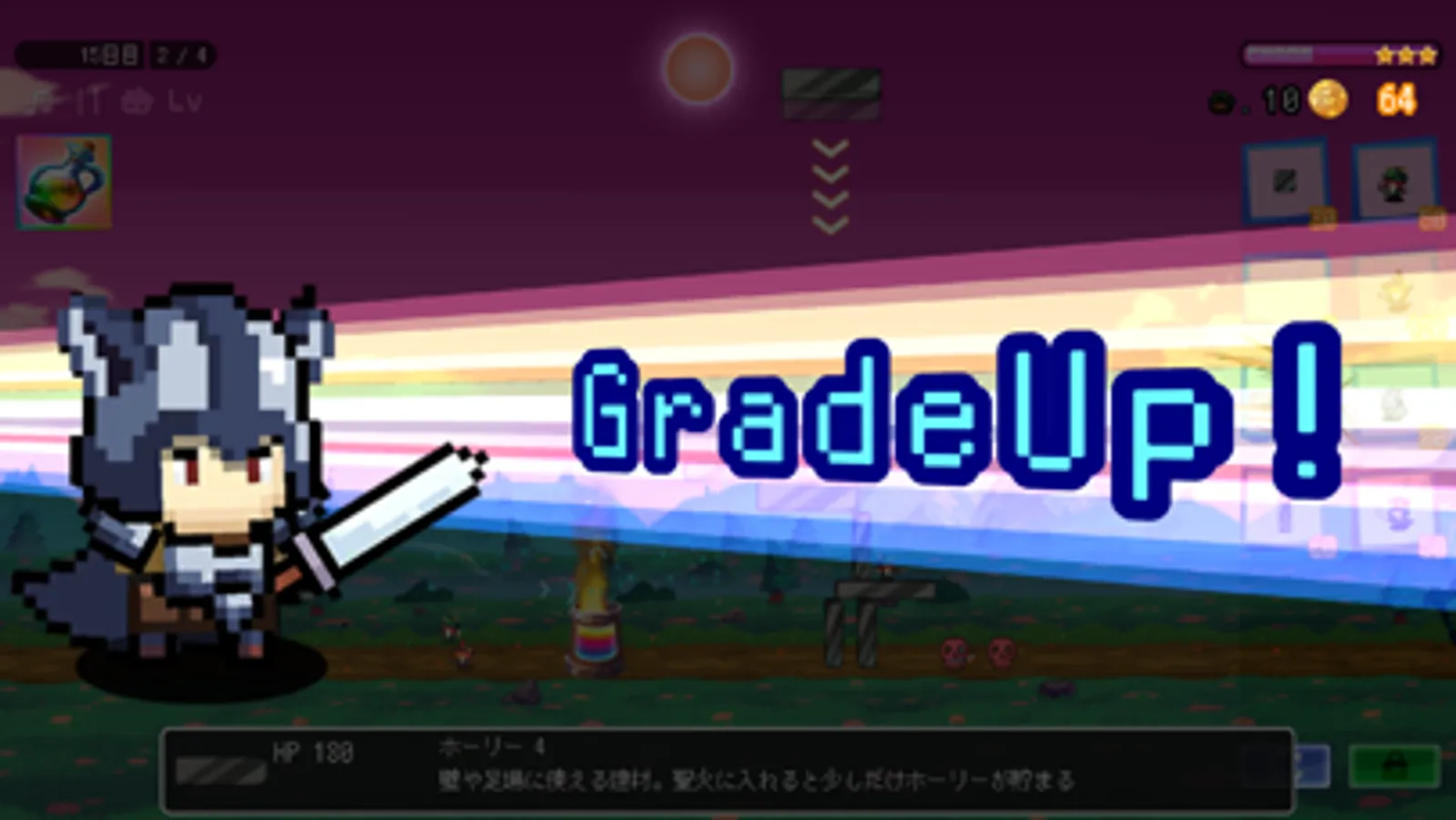 ブロックや聖石を聖火に投入するとホーリーがたまりグレードアップできる