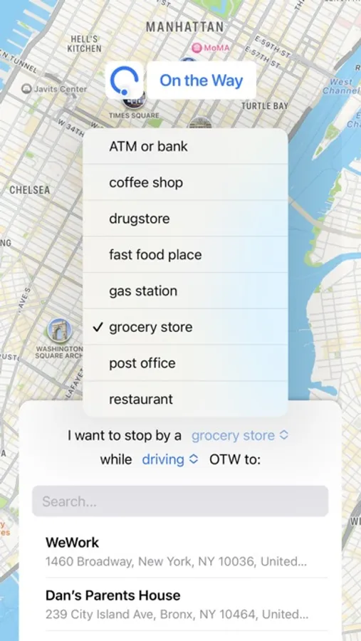 On the Way will save you enormous amounts of time by optimizing your travel route. Leaving the house is hard, so rest assured that you won't waste a single minute of your time outside. On the Way will find you the stop options along your route that will add the smallest possible detour.