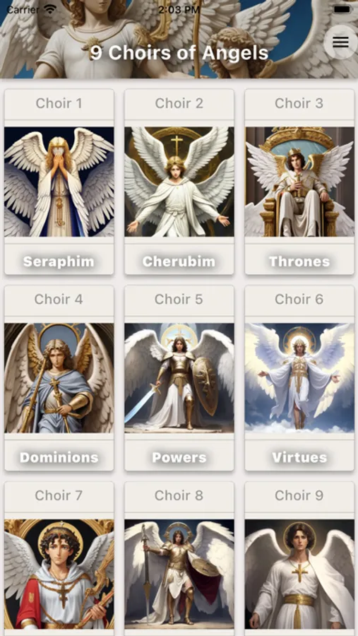 The Nine Choirs of Angels, are hierarchical orders or choirs of angels in heaven. These choirs are grouped into three spheres, each consisting of three choirs, based on their proximity to God and their assigned duties.