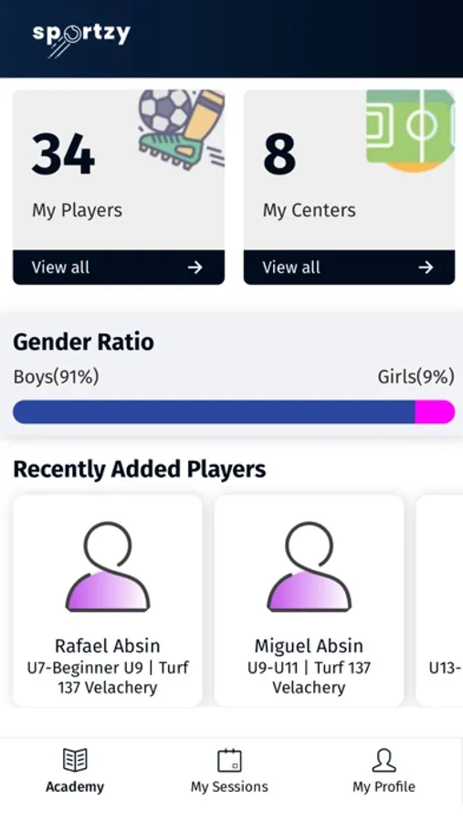 The Sportzy Coaches app serves as a valuable tool for coaches, enabling them to efficiently oversee centers, store comprehensive student data, categorize various age groups, and effortlessly handle attendance and registrations.