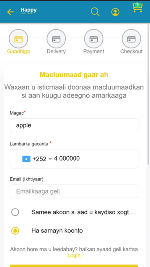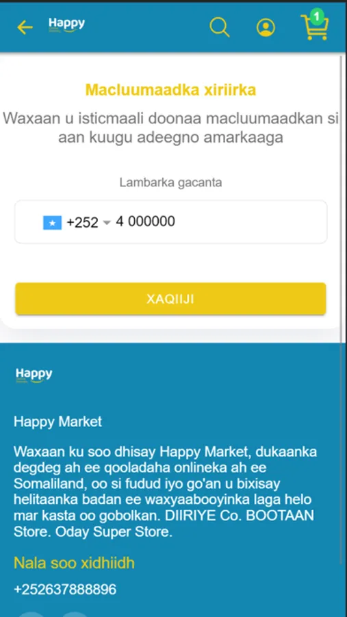 Join the Happy Market community today and experience the convenience, quality, and affordability that sets us apart. Shop with confidence, knowing that we are dedicated to providing you with the best online grocery shopping experience in Somaliland. Your satisfaction is our priority, and we are committed to spreading happiness one order at a time.