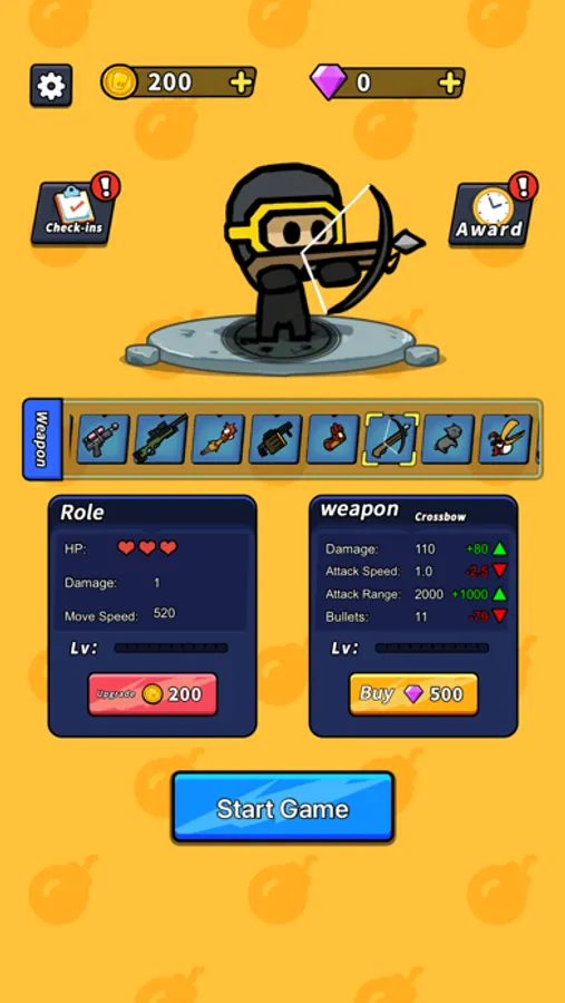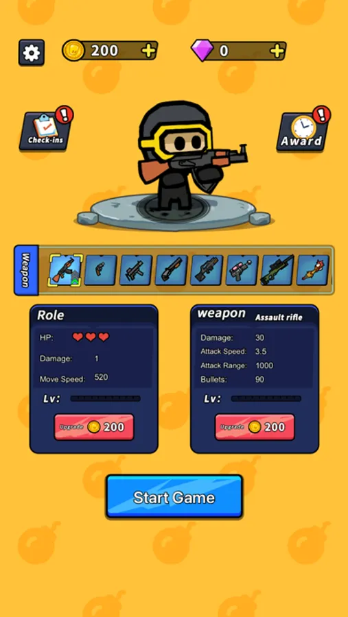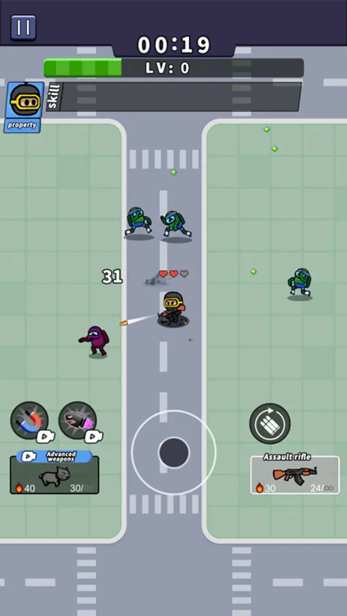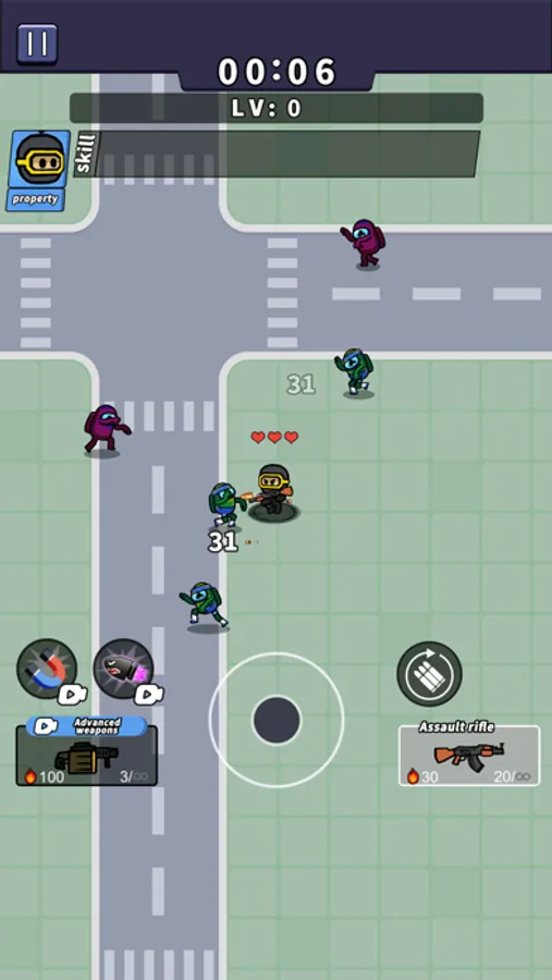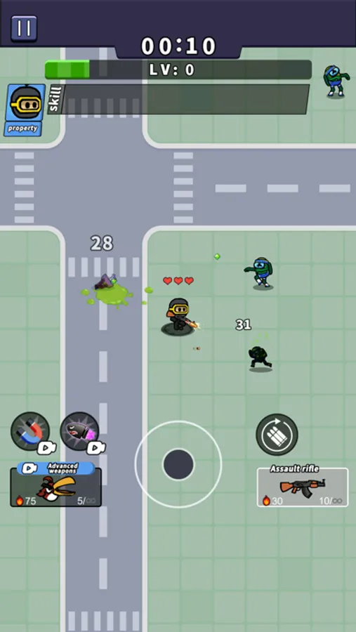 In addition to character upgrades, you can select from over 10 different weapons to combat the zombie horde. Each weapon has unique features and abilities, with some advanced weapons possessing special effects that help you better withstand the zombie armies.