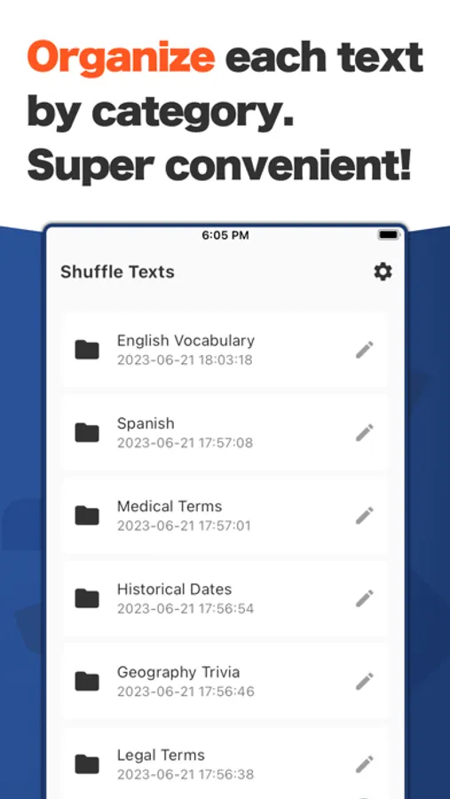 This is an app that shuffles the text you input line by line, and displays it one by one. By arranging the text randomly, it is recommended for studying and memorizing.