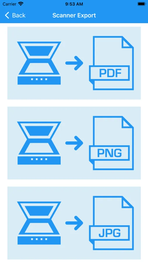 - Once you have all the photos you would like, you can export them to the format you select: PDF, JPG, or PNG.