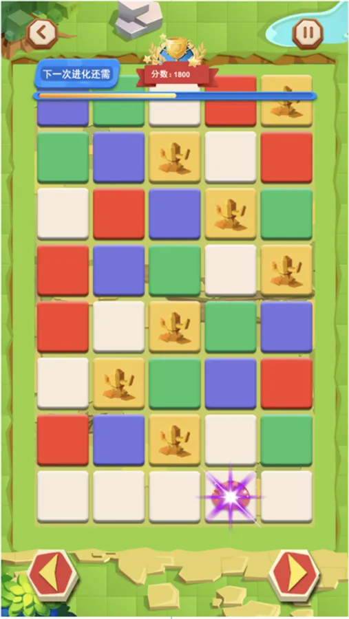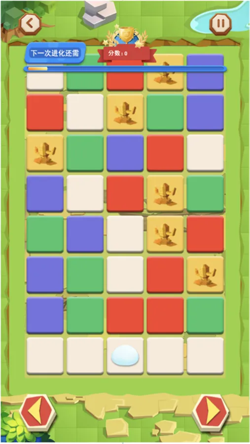 史莱姆王国有危机了!!我们邀请你们来帮助初生的史莱姆进化, 选择一个砖块,之后要移动到同颜色的砖块, 帮助史莱姆,令到牠吸收砖块颜色的能力,得到分数。当进化分数达到一定数值,史莱姆身体就会有变化,而且得到新技能。技能能够帮助史莱姆更轻松得到更多的分数。